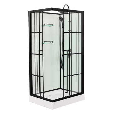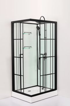 Душевая кабина Loranto 980x980x2040 без крыши, правосторонняя, белое заднее стекло, поддон 14 см, прозрачное стекло 4 мм, профиль черный (CS-3008TM/W-100R)