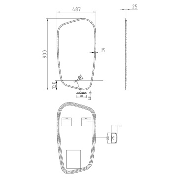 Зеркало AZARIO Madrid 487х900 с подсветкой, сенсорный выключатель с функцией диммера (AZ-Z-080CS)