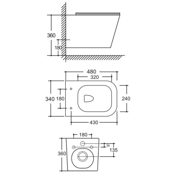 Унитаз подвесной Azario Armonia 340х480х360 безободковый, система смыва "Скрытое Торнадо", с быстросъемным сиденьем "Микролифт" (AZ-2403)
