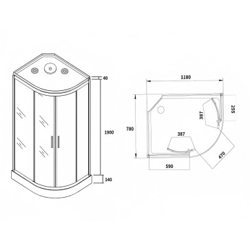 Душевая кабина Loranto 1180х780х2080 левосторонняя, черное заднее стекло, поддон 14 см, тонированное стекло 4 мм, профиль хром матовый (CS-876EATM/B-120)