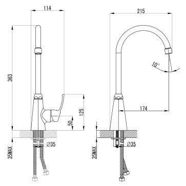 Смеситель для кухни Azario керамический картридж, хром (AZ-HU245900)