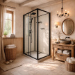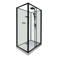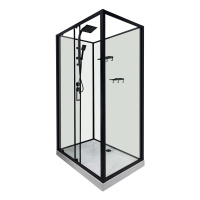 Душевая кабина Loranto 980x980x2040 без крыши, правосторонняя, белое заднее стекло, поддон 14 см, прозрачное стекло 4 мм, профиль черный (CS-3010TM/W-100R)